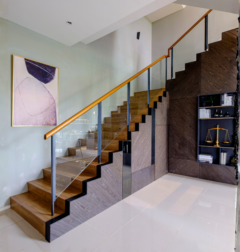 Stainless Steel with Wood Balustrade and Glass Railing